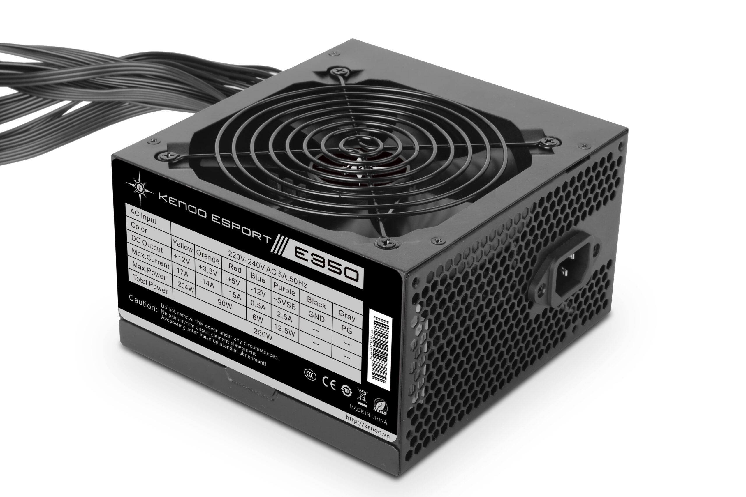 Nguồn máy tính KENOO ESPORT E350 350w ( Fan 12cm/ Cáp Dẹt/ Màu Đen)